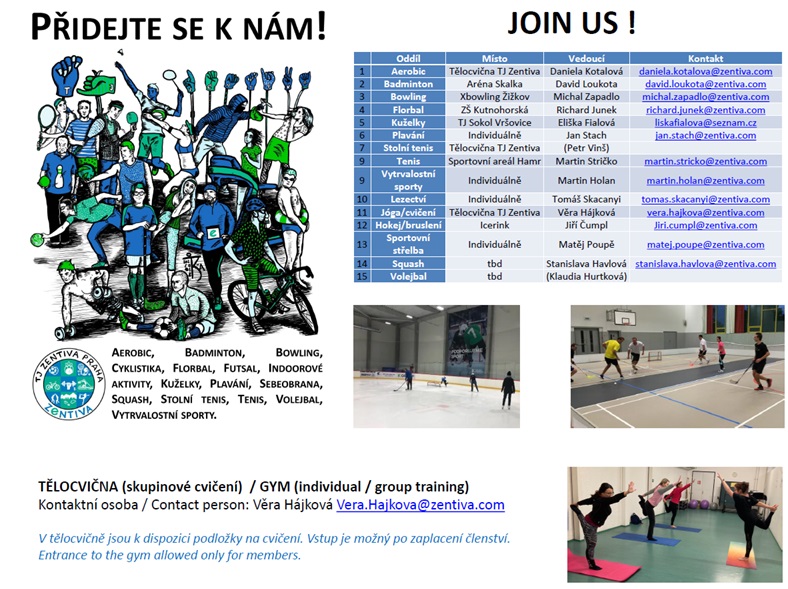 Sportovní aktivity pro zaměstnance a spolupracovníky společnosti Zentiva Praha